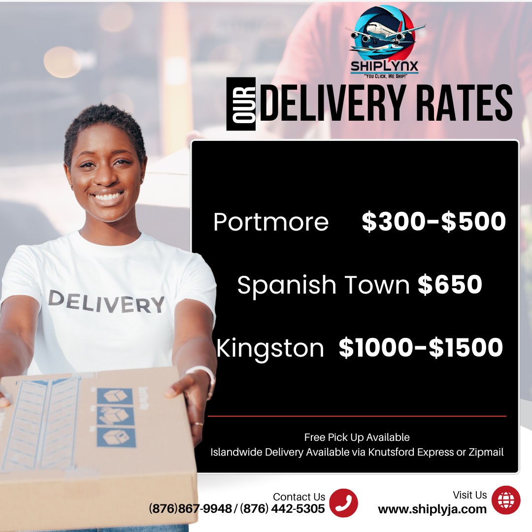 Get your packages delivered directly to you in Portmore, Spanish Town or Kingston. Delivery is also available island wide, conditions apply.